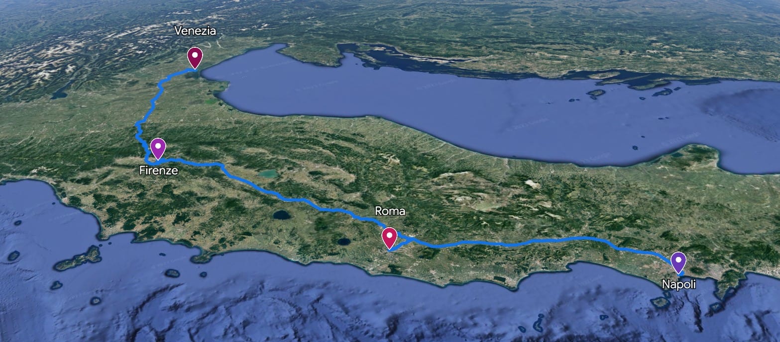 A classic itinerary that combines four iconic Italian art cities, rich in culture, history, and food&wine and local traditions. It will be a truly “green” journey since you will reach each destination by high-speed Italian trains!